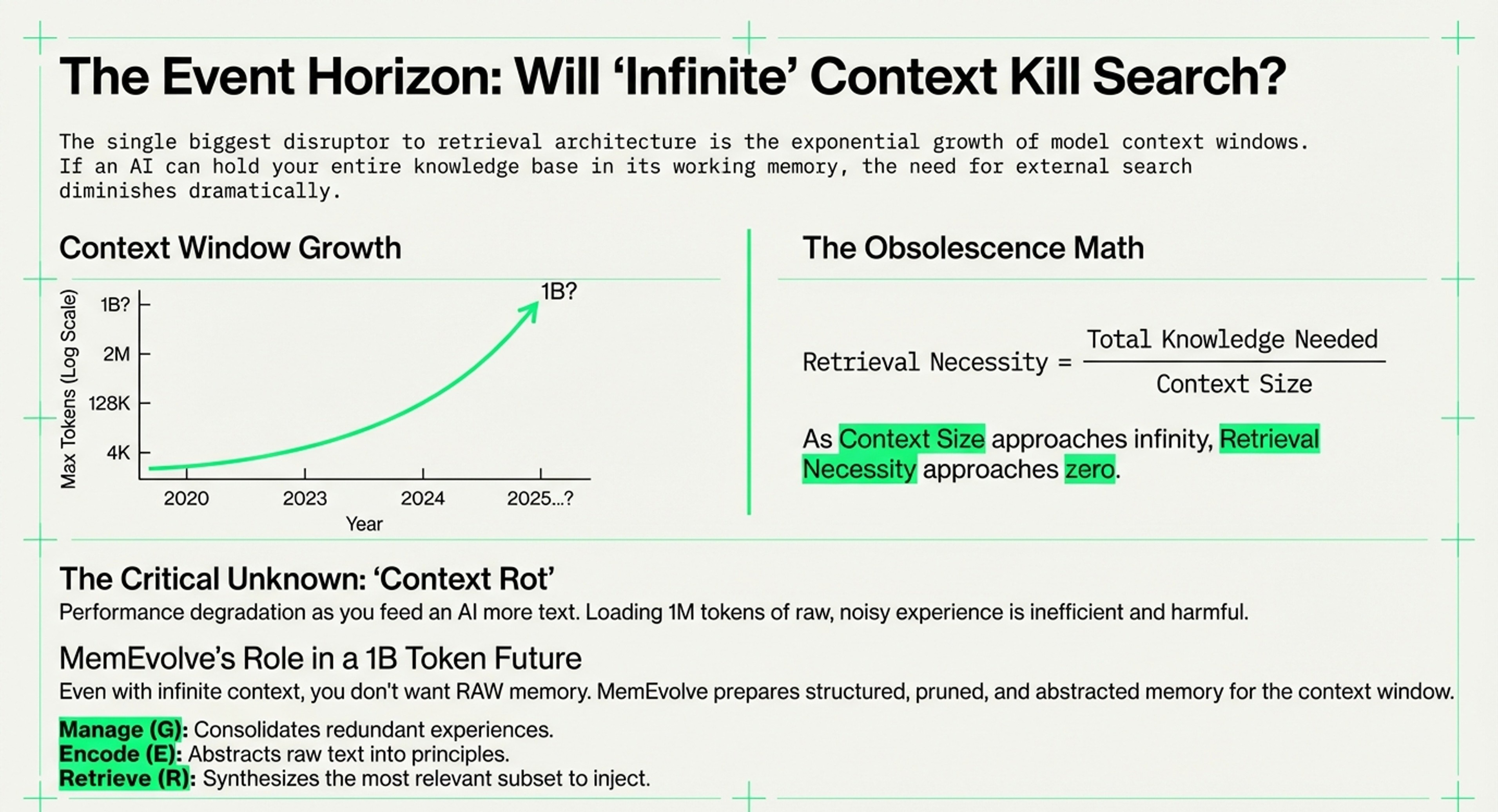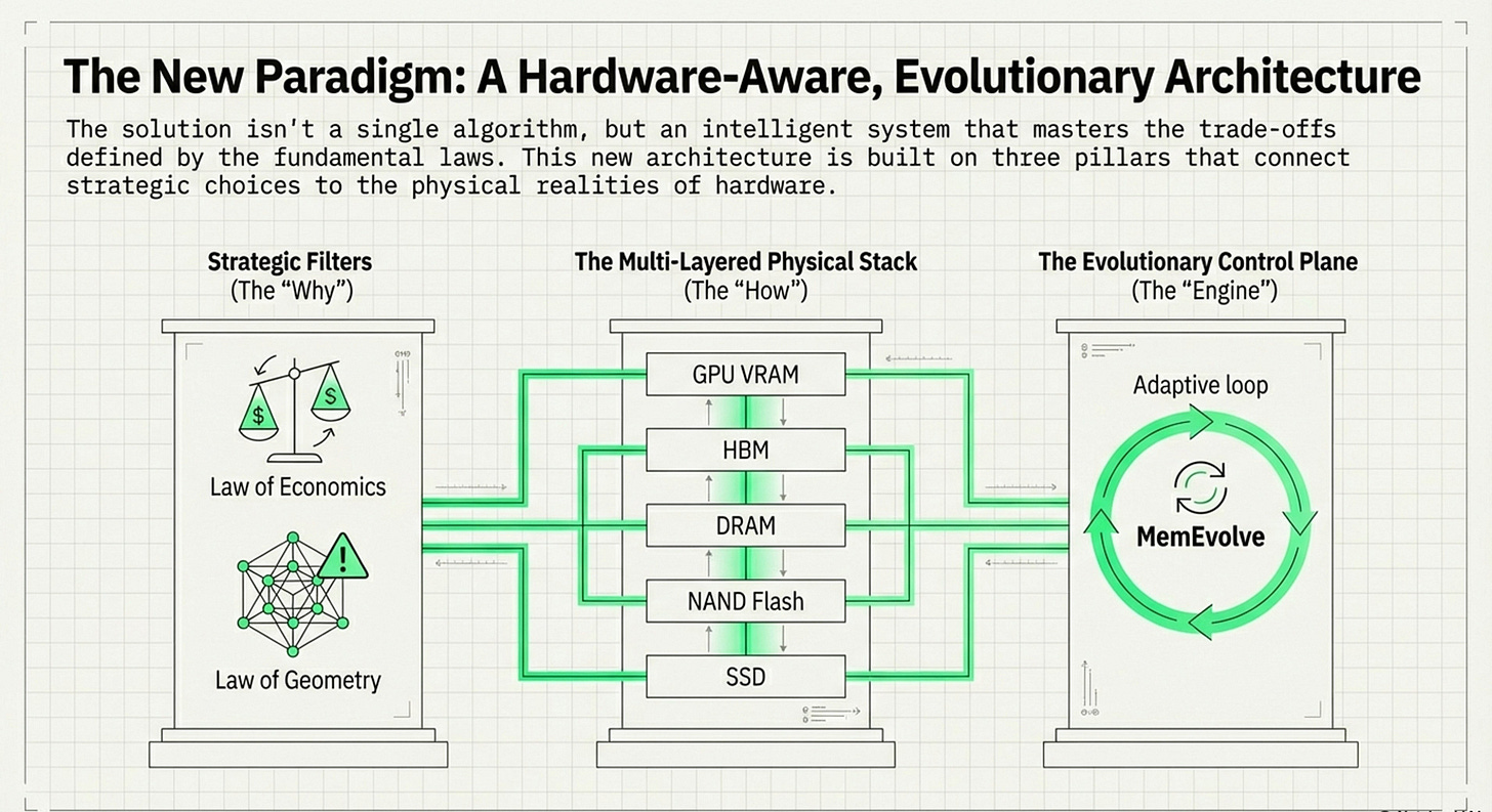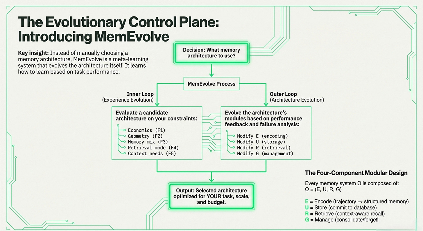 Combined, both explore the evolution of AI memory architectures, moving beyond the initial "vector gold rush" toward more hardware-aware and adaptive systems. They establish fundamental economic, geometric, and architectural laws that highlight the high costs and mathematical limitations of traditional vector searches. To address these constraints, I had highlighted and introduced MemEvolve, a meta-evolutionary engine that automates the design of memory modules by learning from performance failures.