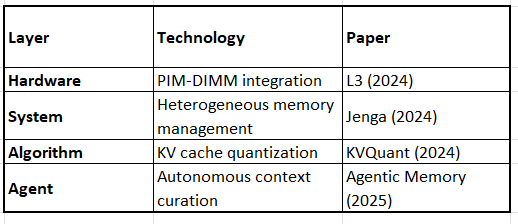 The hardware layer is foundational but often ignored in agent/LLM memory research. This creates a dangerous disconnect: