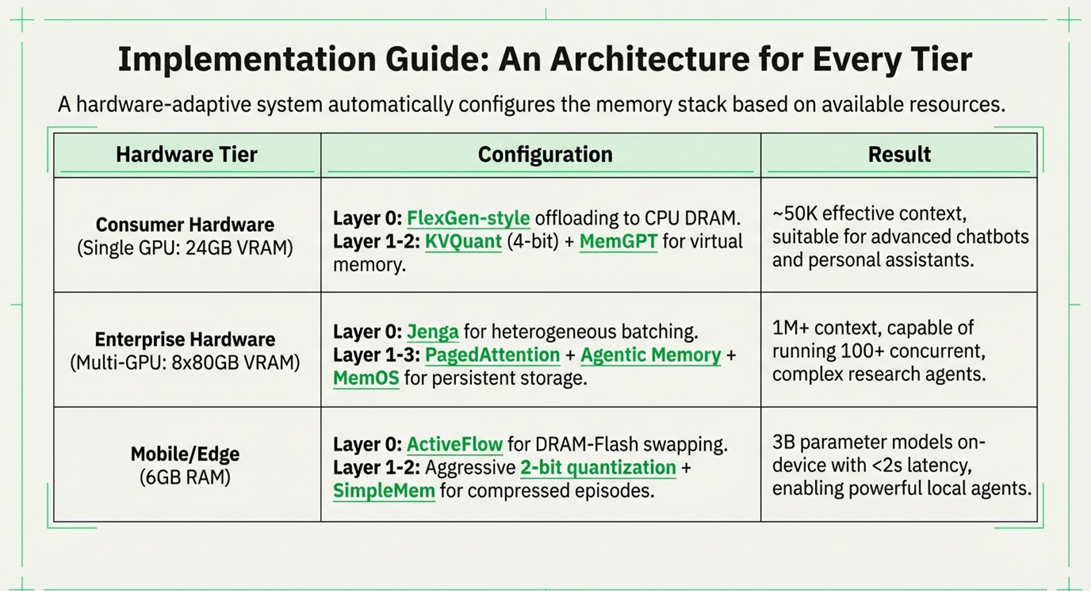 Implementation Guides: It provides (I hope) a practical guide for deploying agents on different hardware tiers, such as mobile/edge (6GB RAM) versus enterprise (8x80GB GPU) setups.