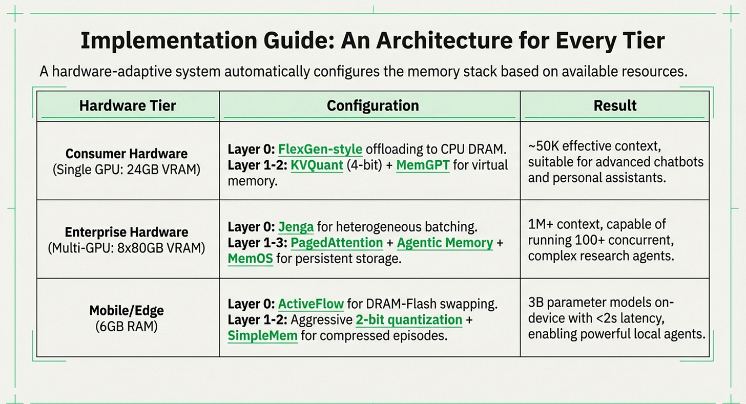 The holy grail: An agent memory system that seamlessly scales from mobile phones (6GB) to data centers (terabytes) without algorithmic changes—just like modern operating systems handle memory across diverse hardware.