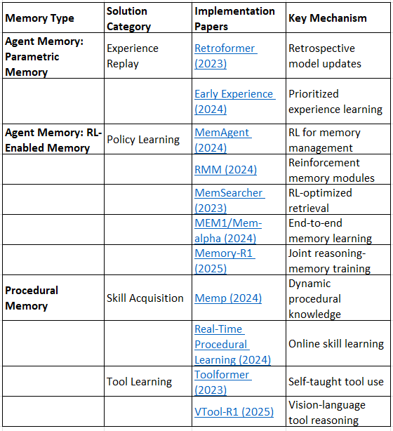 Memory-R1 (2025) = Parametric + RL-enabled + Procedural