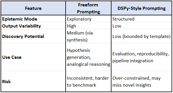 These critiques echo my central thesis: variability in prompting is not a flaw—it’s a feature, especially when probing the synthesis-discovery boundary.