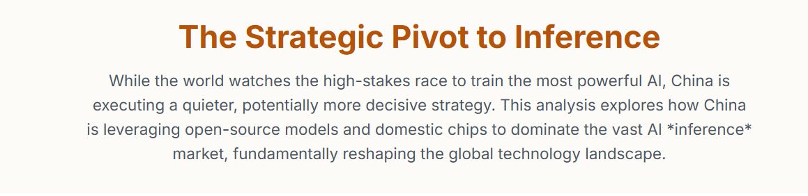 The implications are staggering. If successful, this approach could allow China to bypass US export controls entirely, create technological dependency among developing nations through initiatives like the Digital Silk Road, and establish Chinese AI infrastructure as the de facto global standard—all while the US focuses on maintaining its training advantage for a relatively small number of frontier models. I hope to somewhat exhaustively (if that is even possible) analyze China's inference-centric strategy, its technical underpinnings, its geopolitical objectives, and the strategic blind spots in the current US response.