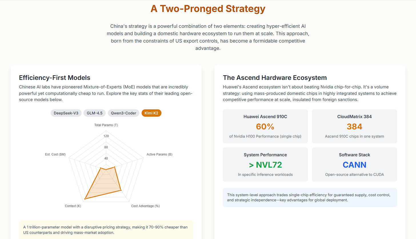 By denying Chinese firms easy access to state-of-the-art Nvidia GPUs, US policy has forced them down a path of "constraint-driven innovation." This has led directly to the development of the superior, efficiency-first model architectures detailed earlier. Simultaneously, the sanctions have strengthened China's strategic resolve and catalyzed massive state-led investment in its indigenous hardware ecosystem (the Ascend platform) and domestic manufacturing capabilities (SMIC), as analyzed earlier.54 In essence, US policy, by closing the door to the "easy" path of buying the best hardware, has compelled China to develop a more resilient, sovereign, and strategically coherent long-term alternative.